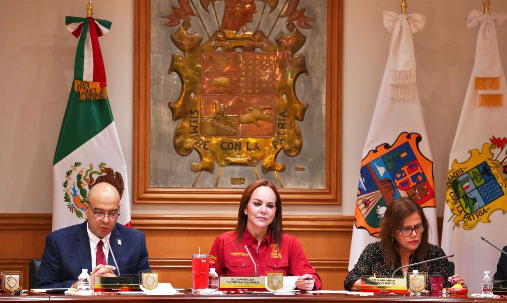 Nuevo Laredo, Tam.- Durante la sesión de Cabildo, la alcaldesa Carmen Lilia Canturosas Villarreal respaldó la propuesta de la Comisión de Desarrollo y Fortalecimiento Municipal para la remisión al Honorable Congreso del Estado de Tamaulipas del Primer Informe de Ejecución del Plan Municipal de Desarrollo 2024-2027, documento que refleja el alto nivel de cumplimiento en la implementación de políticas públicas y programas alineados a la Agenda 2030 de la ONU y sus Objetivos de Desarrollo Sostenible (ODS).