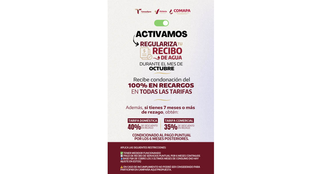 🧾📣 Activa COMAPA Victoria la campaña “REGULARIZA TU RECIBO”
