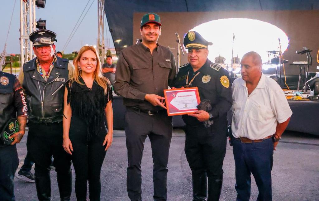Junto con Reynaldo Santana, presidente de la Confederación de Autos Unidos por Tamaulipas, el Alcalde y la Coordinadora de Turismo y Comercio, Sandra Elizabeth Garza Faz, hicieron un recorrido para saludar a los participantes de la concentración, quienes previamente realizaron una rodada por la ciudad, para luego entregar un reconocimiento al Presidente Municipal por su apoyo.