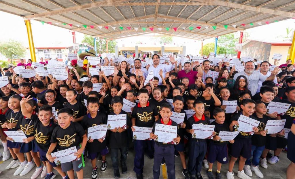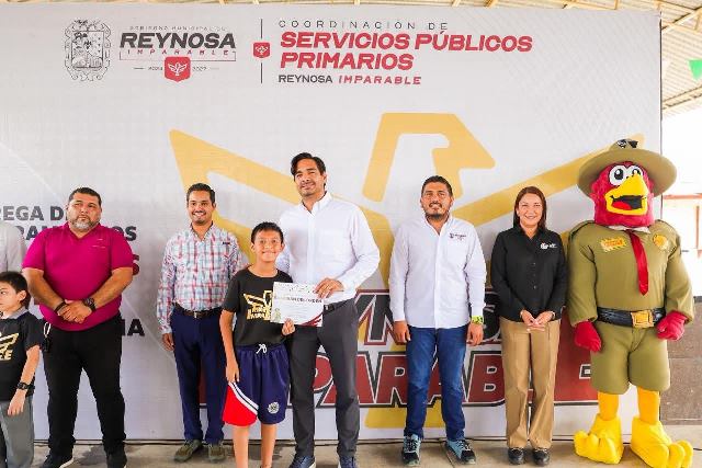 Reynosa, Tam.- “El día de hoy ya son Guardianes del Orden, aprendieron a cuidar el medio ambiente, no tirar basura; todo eso es importante para nuestra ciudad, debemos evitar que haya quien tire basura en lugares clandestinos porque debe ir en el basurero o el contenedor, gracias por ayudar”, dijo el Alcalde a la emocionada comunidad escolar de la Primaria Moctezuma.