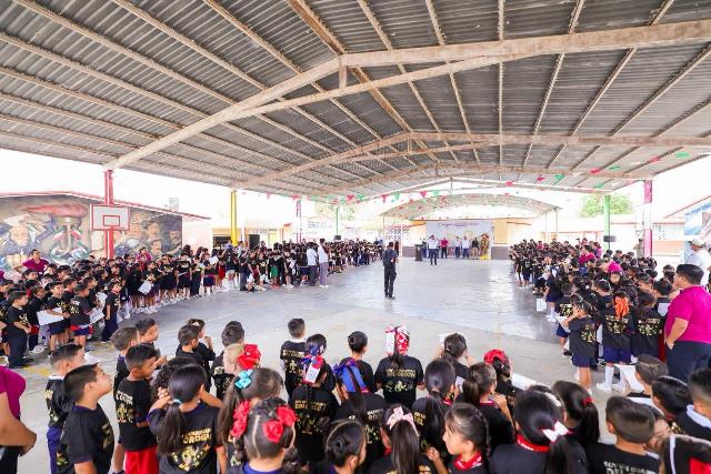 Con la presencia del Director de la institución, Marino Flores Molina; José Antonio Chávez Herrera, Secretario de Servicios Públicos; Mario Soria Stamatio, Regidor Coordinador de Servicios Públicos Primarios en el Cabildo y la Directora del DIF, Gabriela Rosas Blanco, el Presidente Municipal entregó los nombramientos a los niños y niñas de la escuela, comprometidos hoy con una mejor ciudad.