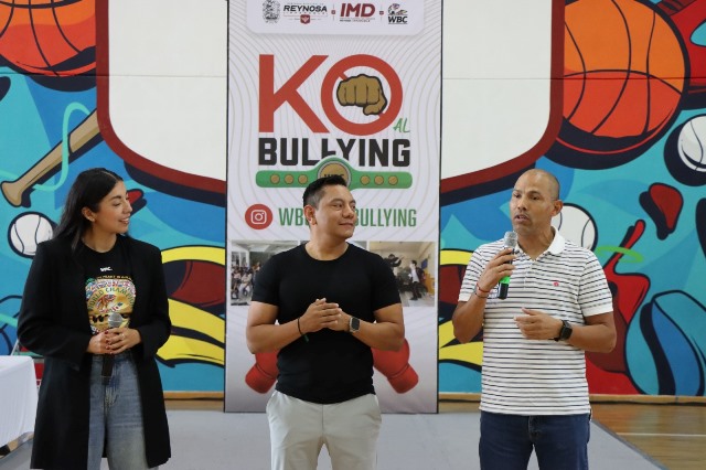 Reynosa, Tam.- Con el respaldo del Alcalde Carlos Peña Ortiz, se llevó a cabo con gran éxito la clínica “Knockout al Bullying”, una iniciativa impulsada por el Consejo Mundial de Boxeo (WBC), impartida por la destacada vocera y líder del movimiento en México, Beka Romero.