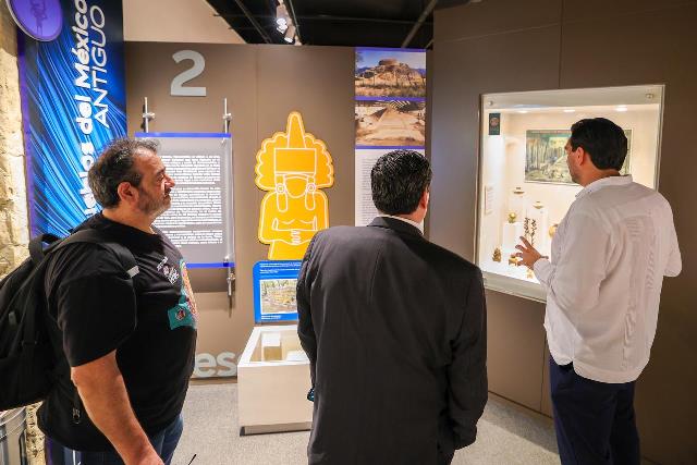 La exposición disponible en la planta alta de martes a domingo, en horario de 9:30 A. M. a 5:30 P. M. con entrada libre, guiada por personal del recinto.