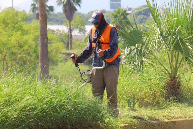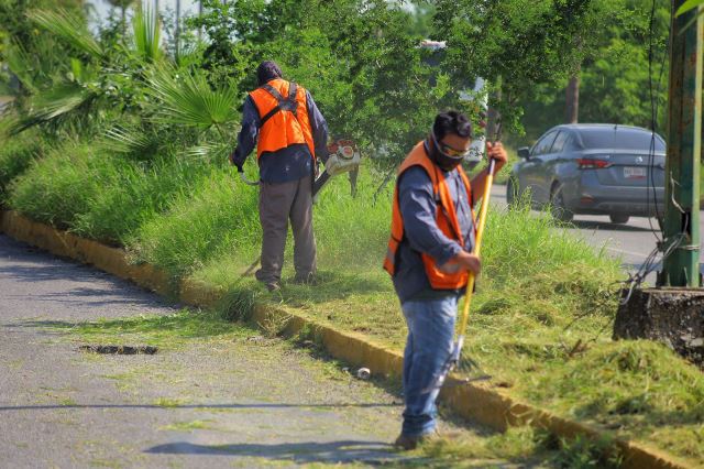 El complemento de acciones, estuvo a cargo de la Secretaría de Servicios Públicos con trabajos de chapoleo y retiro de basura en camellones centrales y laterales del boulevard Práxedis Balboa, avenida Águila Azteca, sector de la colonia Moderna y en torno al Parque Bicentenario.