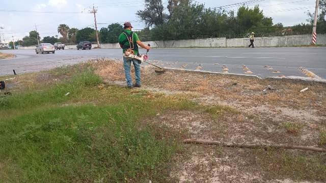 Corte de maleza en bulevar Colosio para mantener la zona libre de obstáculos y mejorar la visibilidad.