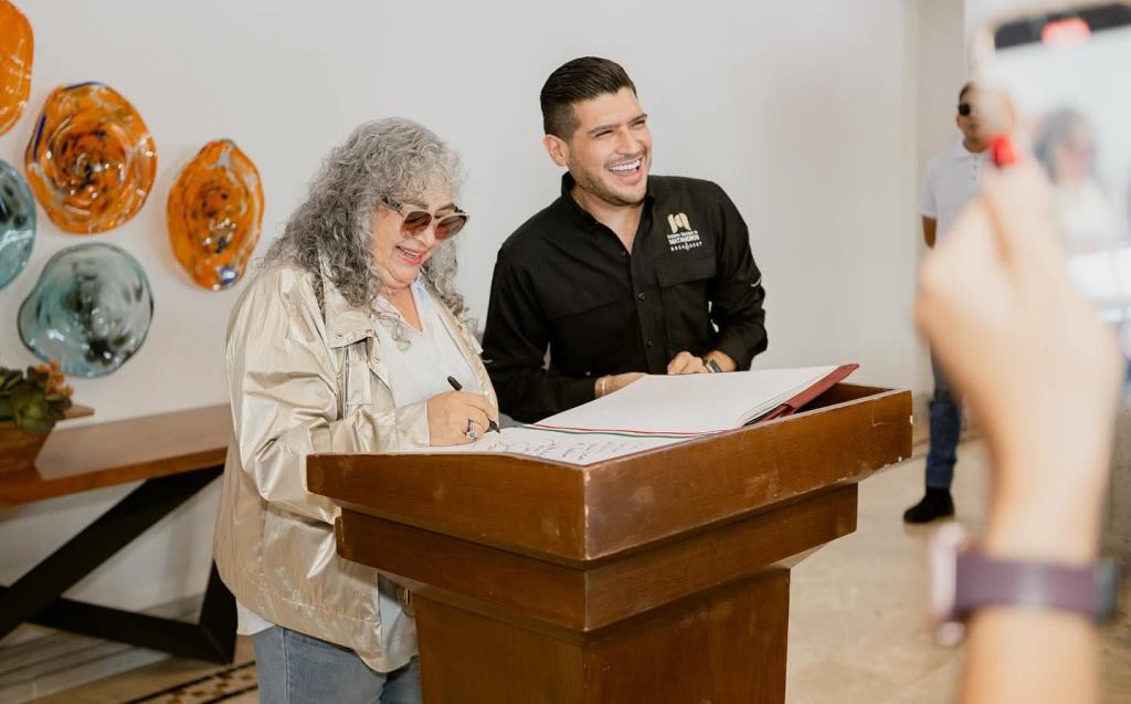 H. Matamoros, Tamaulipas.- La reconocida cantante Amanda Miguel firmó el Libro de huésped distinguido de Matamoros, gesto con el que expresó su agradecimiento por el cariño y las muestras de afecto recibidas durante su presentación en el cierre del Festival Internacional de Otoño.