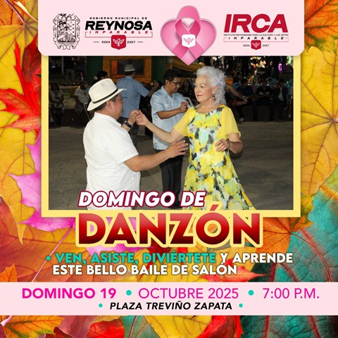 Finalmente, a las 7:00 P. M., en la plaza Treviño Zapata, en la colonia Longoria, se llevará a cabo el Domingo de Danzón, a cargo de los Maestros Josué Carlos Rodríguez Vega y Yerania Ymelda Zúñiga Rodríguez, quienes compartirán su experiencia en este baile tradicional.