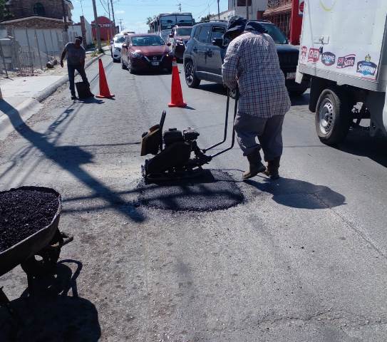 Bulevar Del Maestro, se realizaron trabajos de reparación de baches para mejorar la circulación y seguridad en esta importante vía.