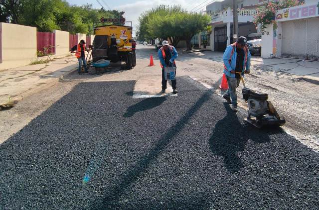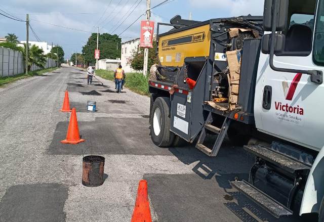 Cd. Victoria, Tam.- De forma alterna al Plan Emergente de Bacheo, el Departamento de Rehabilitación de Pavimentos del Municipio trabaja en colonias y zona centro de la ciudad en la reparación de superficie de rodamiento en deterioro.