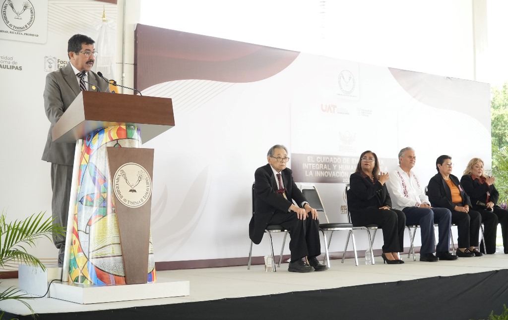 En la ceremonia, dio la bienvenida al Dr. Alberto Rhi Sausi Galindo, hijo del director fundador de la antes Escuela de Enfermería y Obstetricia de Ciudad Victoria, Dr. Alberto Rhi Sausi, destacando la importancia de recordar, en este acto, la historia y trayectoria de esta institución que nació ante la necesidad de formar especialistas comprometidos con el cuidado de la vida y la salud.