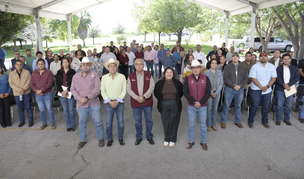Durante la ceremonia de entrega estuvieron presentes: Cuauhtémoc Amaya García subsecretario de Desarrollo Pecuario y Forestal; Marco Antonio Solís Hinojosa, secretario de la Unión Ganadera Regional de Tamaulipas; Eduardo Esteban Maraboto Martínez, director de Extensionismo Pecuario; además de jóvenes beneficiarios del programa de apicultura.