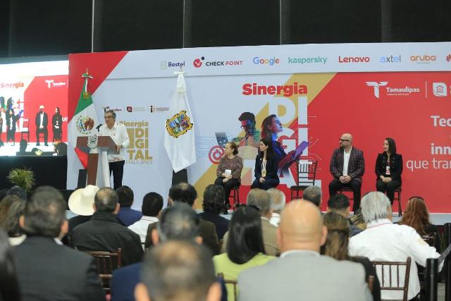 Durante el Congreso Sinergia Digital 2025, Tecnología que une, Innovación que Transforma, el cual fue inaugurado por el gobernador Américo Villarreal Anaya, la representante del titular de la Agencia de Transformación Digital y Telecomunicaciones del Gobierno Federal, José Antonio Peña Merino, reconoció que desde Tamaulipas se ha puesto a prueba la visión de la presidenta Claudia Sheinbaum, de que la tecnología no sirve para nada si no se pone al servicio de las personas.