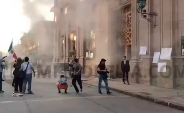 INCENDIAN PALACIO DE GOBIERNO EN MORELIA DURANTE PROTESTA POR EL ASESINATO DEL ALCALDE CARLOS MANZO