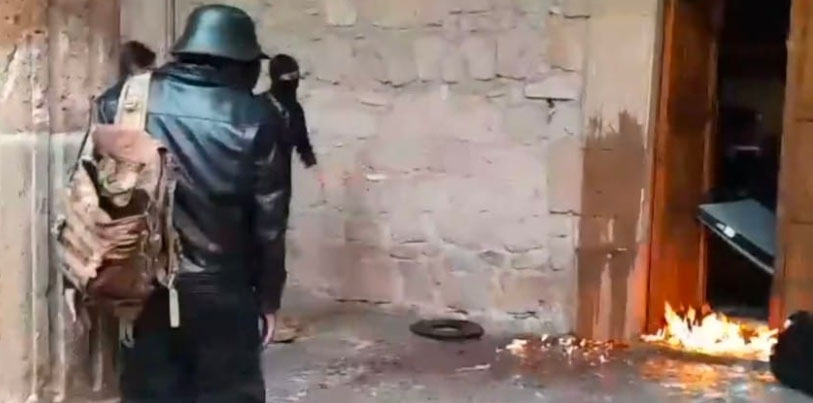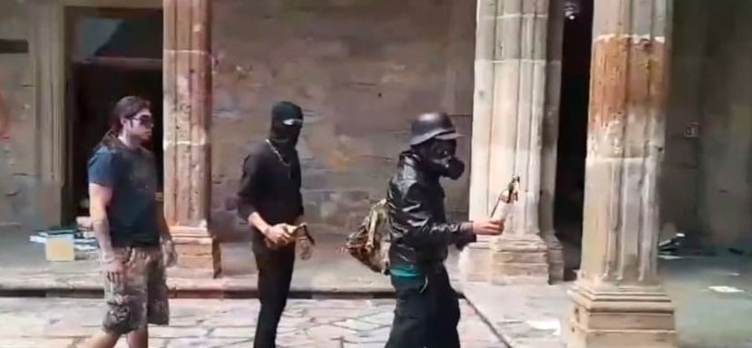 AL arribar, un grupo de jóvenes encapuchados derribó la puerta principal e irrumpió en el inmueble. De acuerdo con testigos, los manifestantes provocaron destrozos en oficinas, mobiliario y documentos, además de lanzar bombas molotov que desataron incendios en varias áreas del edificio histórico.