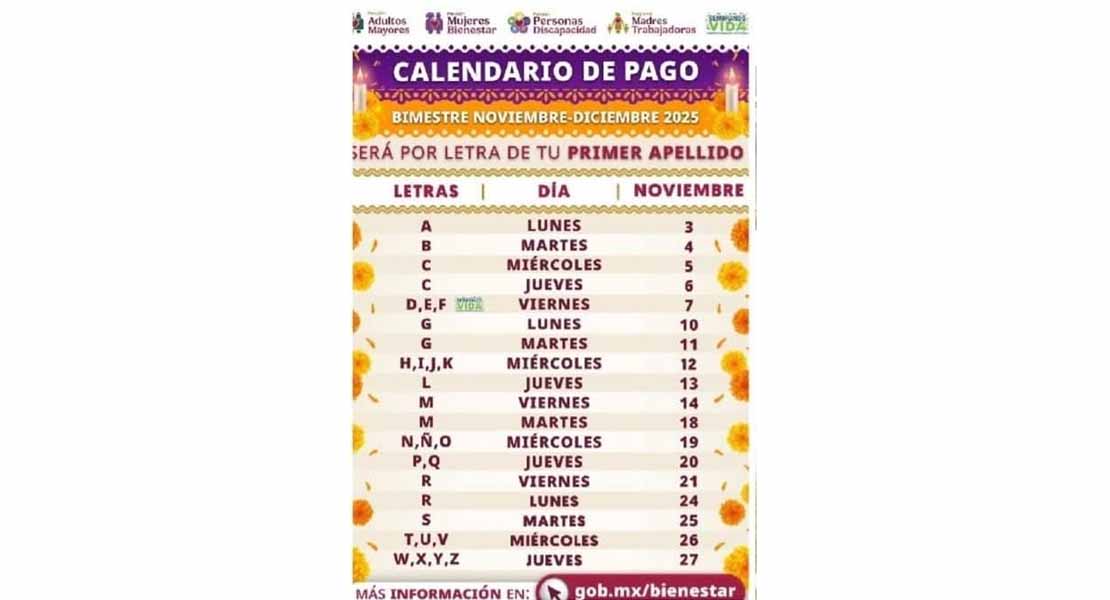 LOS pagos se realizarán conforme a la letra inicial del primer apellido, por lo que se recomienda a las y los beneficiarios mantenerse atentos a la programación oficial. Una vez efectuado el depósito, los recursos estarán disponibles de inmediato en la Tarjeta del Bienestar, garantizando así una entrega directa, sin intermediarios.