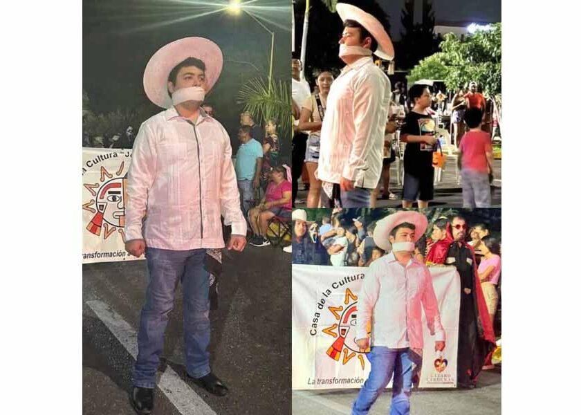 Un joven rindió homenaje a Carlos Manzo en el Desfile de Catrinas de Lázaro Cárdenas, Michoacán