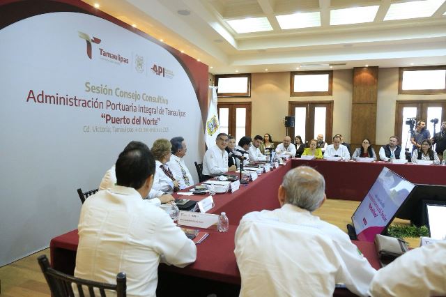 Ciudad Victoria, Tamaulipas.- Al presidir la sesión del Consejo Consultivo de la Administración Portuaria Integral de Tamaulipas, Puerto del Norte, el gobernador Américo Villarreal Anaya reiteró su compromiso para apoyar las gestiones y las autorizaciones necesarias a fin de seguir impulsando este gran proyecto, que tiene una alta rentabilidad para el desarrollo nacional y que permitirá convertir a Tamaulipas en la principal frontera marítima del país.