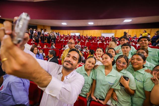 “Ustedes pueden hacer la universidad, luego sigue una maestría, un doctorado, la educación continua para poder ir capacitándote en los temas que a ustedes les importan y que puedan tener un impacto real en nuestra sociedad”, dijo el Alcalde ante alumnos de preparatoria, secundaria y primaria.