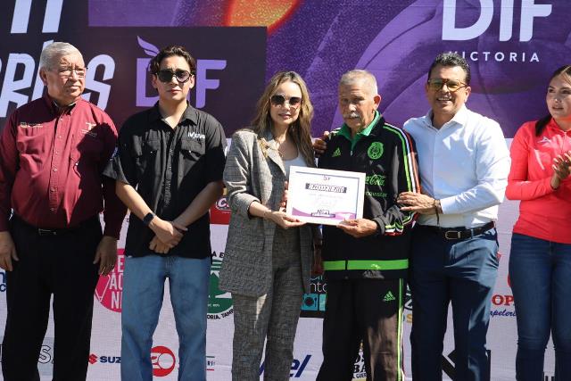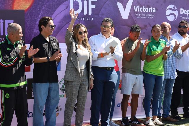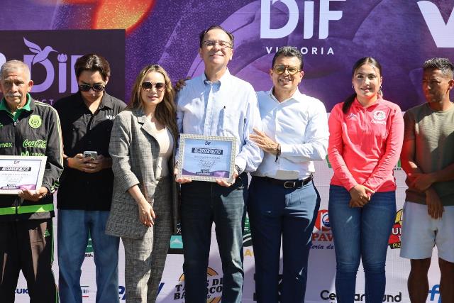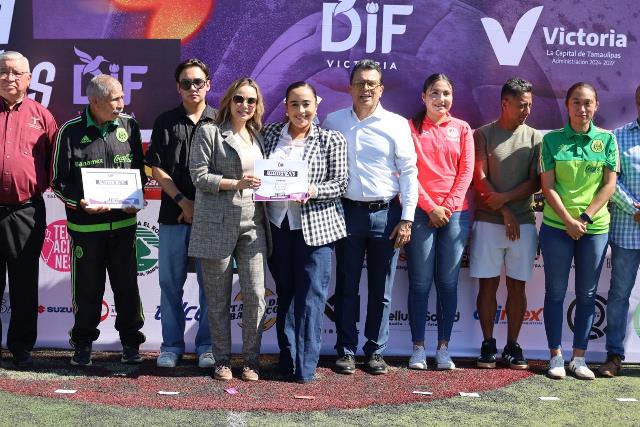 La presidenta del Sistema DIF, Lucy de Gattás, y el alcalde de Victoria, Eduardo Gattás Báez, presidieron la ceremonia de clausura en la cancha Enrique Borja, donde entregaron premio de primer lugar a los equipos, femenil y varonil, de la Secundaria Rafael Ramírez.