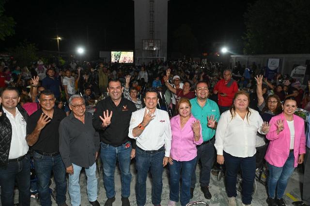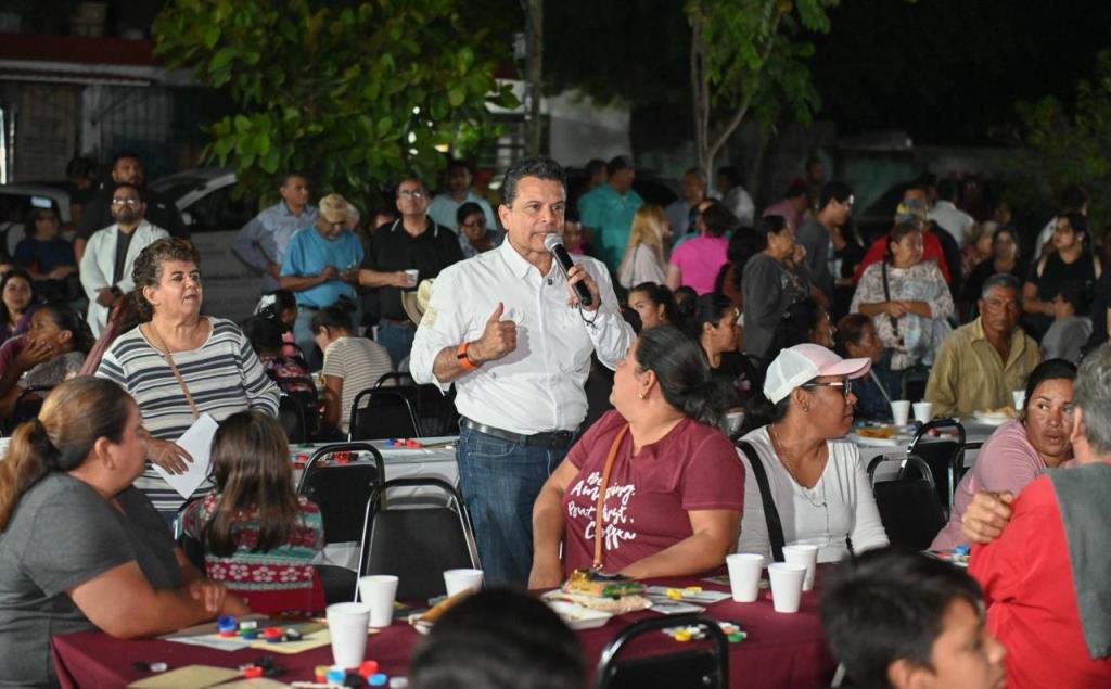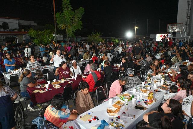 Con el Gabinete Municipal, regidores y representantes de los gobiernos estatal y federal, llegó al área verde del sector a encabezar la verbena popular con refrigerio, lotería, función de cine, beneficios en trámites de predial, agua potable y productos de la canasta básica a bajo costo.