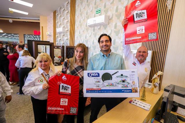 “Buscamos que a la gente, a los comercios les vaya bien, por eso tenemos que trabajar en equipo sociedad, gobierno, comercios; agradecemos muchísimo que nos acompañen, aprovechen, este Buen Fin hay muchísimos descuentos en comercios afiliados a la CANACO”, declaró el Alcalde para dar el banderazo de inicio junto al Director de PROFECO Noreste, José Luis Márquez Sánchez.