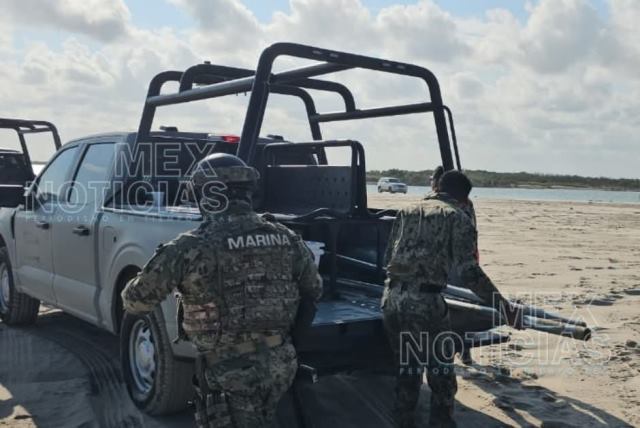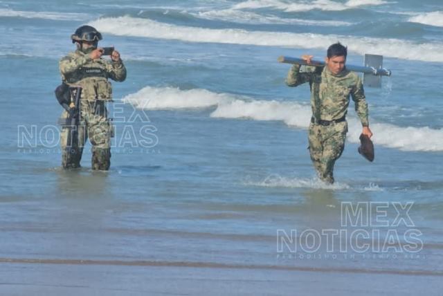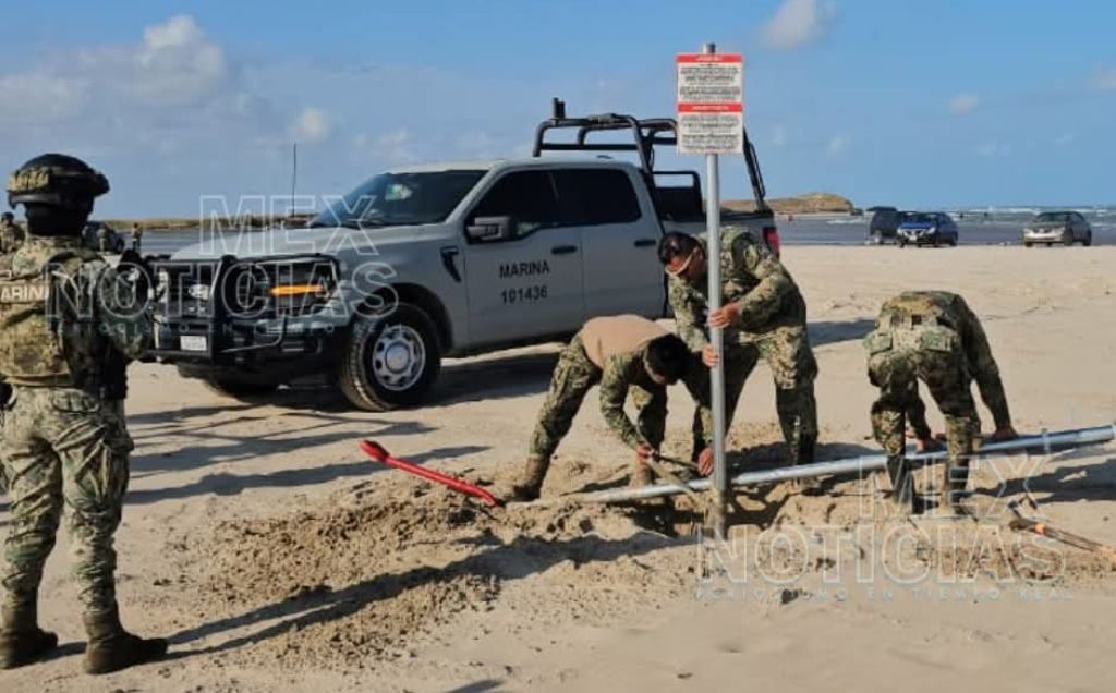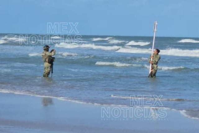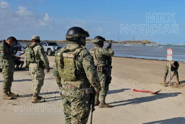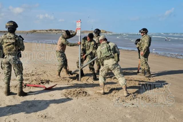 Un par de horas después #MexNoticias capto imágenes de la #Marina cuando llego y retiro los 6 anuncios que fueron instalados por autoridades de Estados Unidos que ingresaron de manera ilegal por medio de una lancha. Foto Galería.