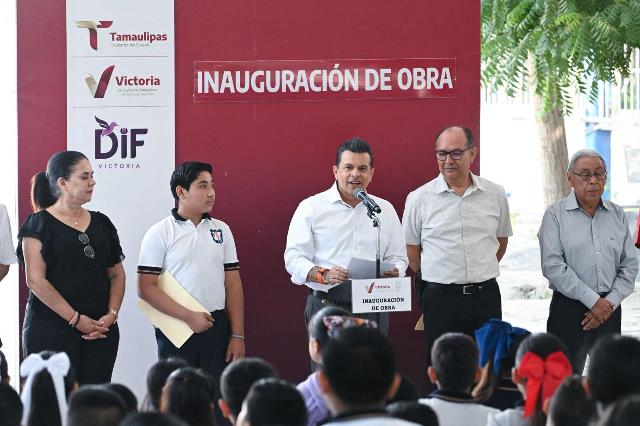 Durante el Gobierno de Eduardo Gattás Báez alumnas y alumnos de 16 escuelas de Victoria realizan sus actividades sin sufrir las inclemencias del clima; un beneficio que, como anunció el gobernante que escucha y atiende, continuará siendo prioritario en el 2026.
