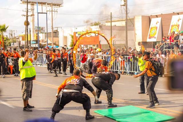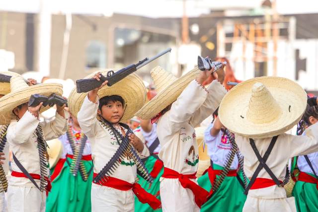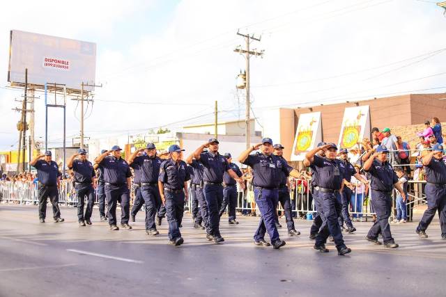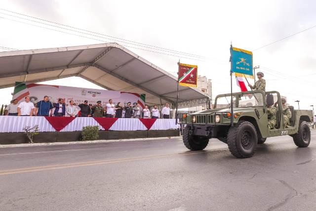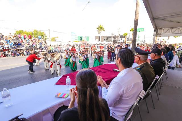 Con la participación de 35 contingentes, encabezados por el Ejército Mexicano, los asistentes apreciaron los vehículos y equipos tácticos de las Fuerzas Armadas, la Guardia Nacional y Guardia Estatal, y sobre todo los números artísticos y deportivos de las escuelas de la localidad.