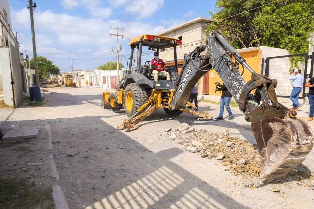 Reynosa, Tam.- El Presidente Carlos Peña Ortiz y vecinos de la colonia Revolución Obrera pusieron en marcha, hoy viernes 21 de noviembre, la construcción de la pavimentación hidráulica de la calle Nuevo Laredo, entre San Carlos y Rodolfo Garza Cantú, donde son invertidos más de 6 Millones de Pesos para brindar mayor bienestar a más de 900 habitantes.