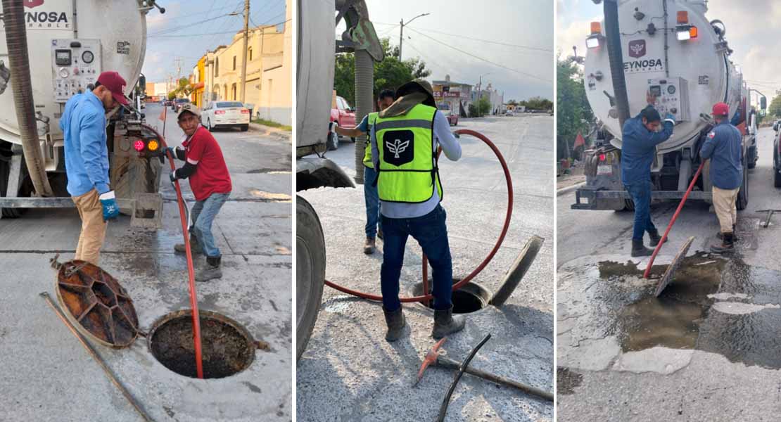 Reynosa, Tam.- Como parte de las acciones permanentes de mantenimiento y mejora del sistema sanitario, la Comisión Municipal de Agua Potable y Alcantarillado de Reynosa llevó a cabo maniobras de sondeo en la línea general de drenaje en diversos sectores de la ciudad.