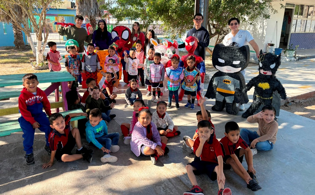 Las actividades siguieron con la donación de piñatas al Jardín de Niños del Ejido La Luz, llevando alegría a la niñez y fortaleciendo los lazos comunitarios. De igual forma, la comunidad estudiantil y docente llevó cuentos, libros de colorear y colores a la Casa Hogar del Niño Matamorense, así como a la Escuela Primaria Miguel García Posada, fomentando la creatividad y el aprendizaje de la niñez.
