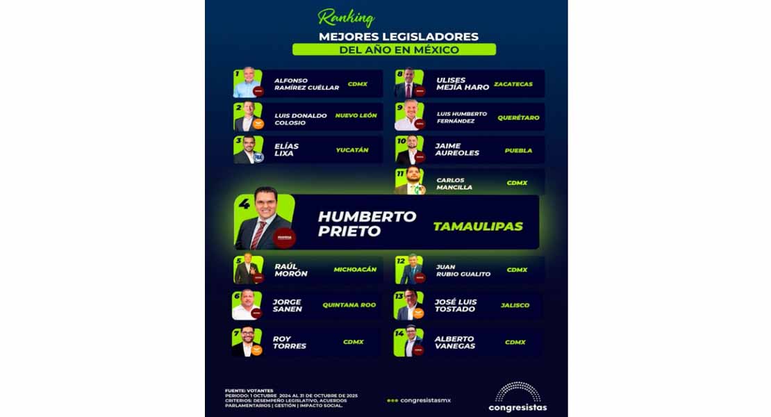 - Tamaulipas dentro del Ranking 2025: Los 14 mejores legisladores de México según desempeño y gestión