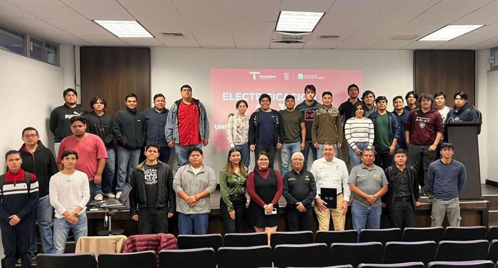 Ciudad Victoria, Tamaulipas.- En el marco de las reuniones realizadas para el proyecto Electrificación al 100%, cuyo objetivo es promover la colaboración de estudiantes de la UPV, el subsecretario de Electricidad y Energías Renovables, Roberto Manuel Rendón Mares, acompañado por el director de Industria Eléctrica, Luis Esteban Igartua, y la directora de Energías Renovables, Elizabeth Martínez Saldaña, presentó ante alumnos de las carreras de Manufactura Avanzada y Mecatrónica los detalles del proyecto, además de invitarles a integrarse a su ejecución durante sus próximos periodos de estadías y estancias, programados para iniciar en enero de 2026.