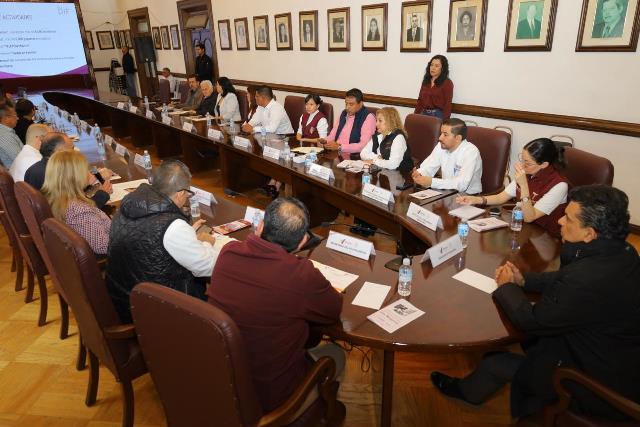 Reunidos en la sala de Cabildo en la Mesa de Bienestar se expusieron los programas asistenciales y las políticas públicas que influyen en temas de salud, educación, seguridad, alimentación y desarrollo comunitario, integrándose a la agenda el INSABI, la SADER, Secretaría de Gobernación y la Secretaría de Desarrollo Rural Estatal.