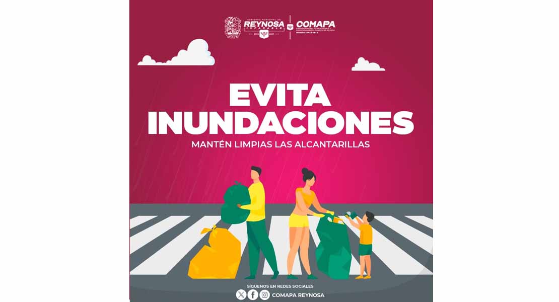 Reynosa, Tam.- La Comisión Municipal de Agua Potable y Alcantarillado de Reynosa hace un llamado a la ciudadanía a sumarse a las prácticas de limpieza y cuidado de la infraestructura para proteger sus hogares y la movilidad de todos, manteniendo limpias las alcantarillas y así prevenir inundaciones.