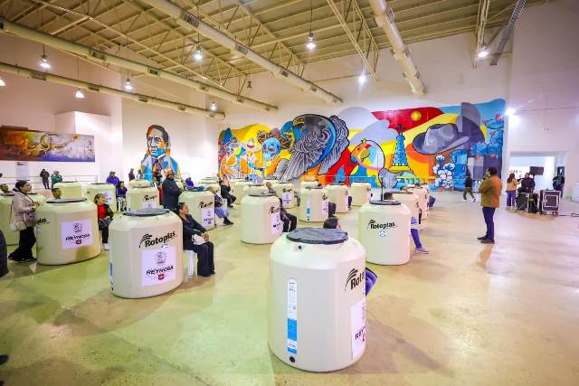 Reynosa, Tam.- Mediante un programa de apoyo a la comunidad, el Presidente Municipal Carlos Peña Ortiz, hizo entrega de gratuita de Tinacos, depósitos para el almacenamiento de agua potable, con la finalidad de mejorar la infraestructura hidtraulica de centros de reunión a los que acuden ciudadanos en busca de apoyo espiritual, cumpliendo estos, una labor importante a favor de las familias vulnerables.