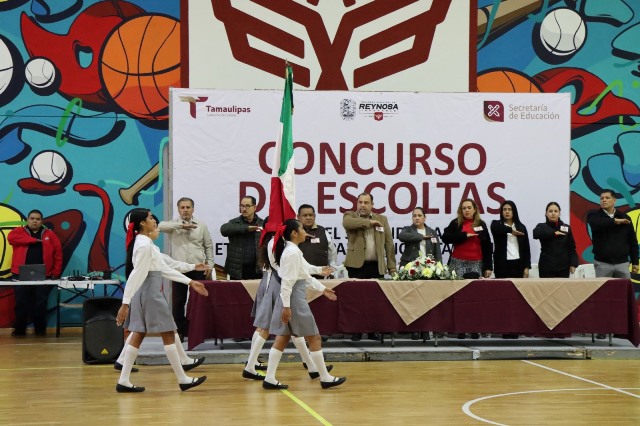 Reynosa, Tam.- El Alcalde Carlos Peña Ortiz fortalece la formación cívica de las y los jóvenes reynosenses, al brindar su respaldo para la realización del Concurso de Escoltas Etapa Municipal correspondiente a los niveles Secundaria y Telesecundarias, evento que tuvo como sede el Polideportivo.