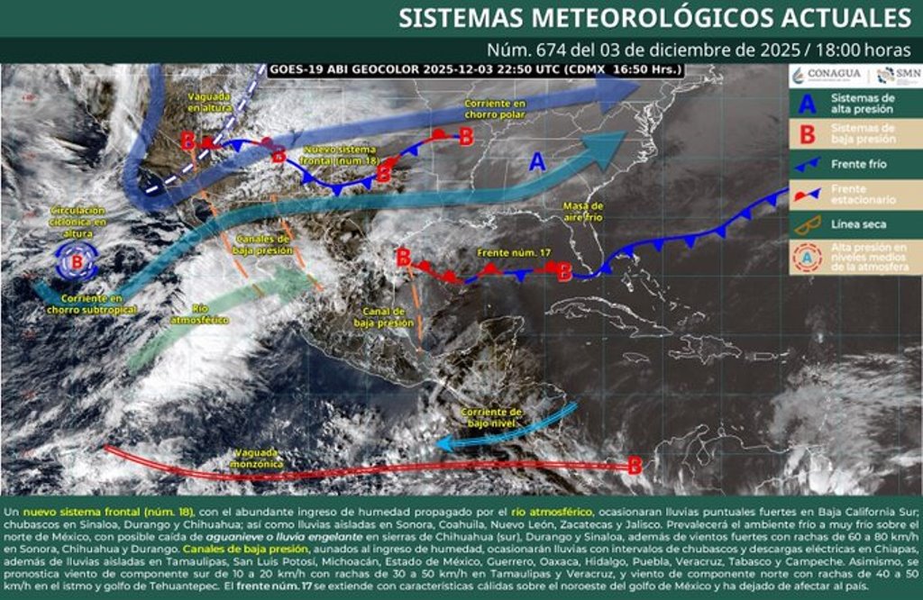 Para este viernes 5 de diciembre se espera una máxima de 18 y mínima de 14; para el día sábado 6 se prevé máxima de 25 y mínima de 17, y el día domingo 7, máxima de 30 y mínima de 11.