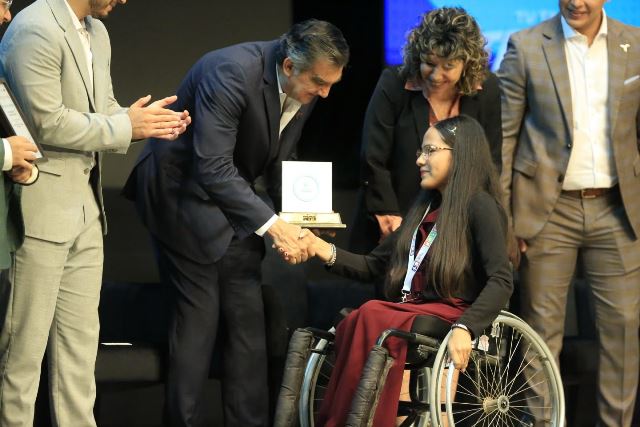 “Todos ustedes son referentes sociales, son gente a la que la sociedad pone como ejemplo. Sigamos teniendo estos ejemplos, sobre todo con sus entrenadores, los divulgadores de estos logros, para poner estos referentes sociales de lo que es bueno hacer para la sociedad. Y eso es el que trabajemos día con día con esperanza”, dijo durante el evento celebrado este viernes en el Teatro Amalia González de Castillo Ledón, en el que entregó premios por un monto total de 1 millón 245 mil pesos.
