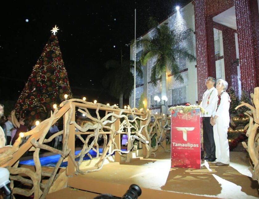 Ciudad Victoria, Tamaulipas.– En medio de una gran fiesta que culminó con el encendido del monumental pino navideño, el gobernador Américo Villarreal Anaya, junto a la presidenta del DIF Estatal, doctora María de Villarreal, deseó a las familias tamaulipecas que esta sea la mejor de las celebraciones y estén llenas de paz, reflexión y una visión humanista para poder seguir…