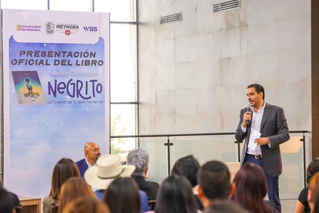 Reynosa, Tam.- En un emotivo evento, se llevó a cabo la presentación del libro “Negrito”, del destacado académico Nester Contreras, quien compartió con la audiencia los pasajes más profundos de su vida y su trayectoria, teniendo como invitado especial al Presidente Municipal Carlos Peña Ortiz y la destacada participación de la niña María Victoria Contreras.