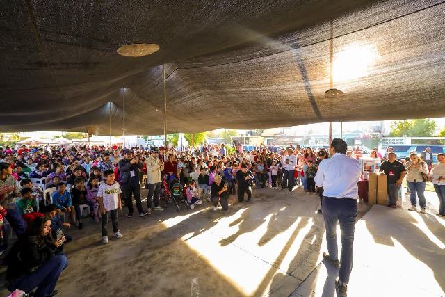 Al Alcalde también lo acompañaron, la Directora del DIF-Reynosa, Gabriela Rosas Blanco y personal de la dependencia que colaboró en la organización del Show de Payasos; rifas donde los asistentes se llevaron bicicletas, pavos para la cena navideña, pinos, y diversos obsequios: en cada evento todos los niños reciben un juguete, así como frituras, dulces y snacks para que ¡En Reynosa se viva una Navidad Imparable!
