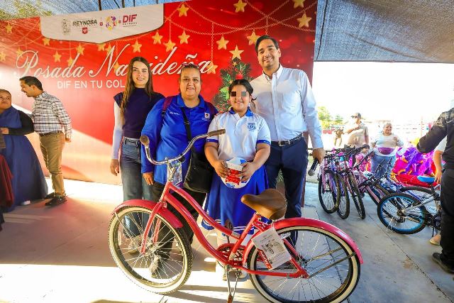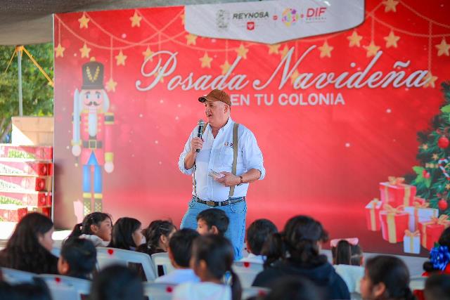 Reynosa, Tam.- La colonia Reserva Territorial Campestre fue sede de la grandiosa Posada Navideña DIF 2025 del programa DIF en Tu Colonia, una celebración que llevó convivencia, alegría y espíritu navideño y muchos regalos a más de Mil familias del sector y colonias aledañas, que convivieron con el Alcalde Carlos Peña Ortiz y con su esposa Alejandra Yelitza Garza, Presidenta del Voluntariado DIF-Reynosa.