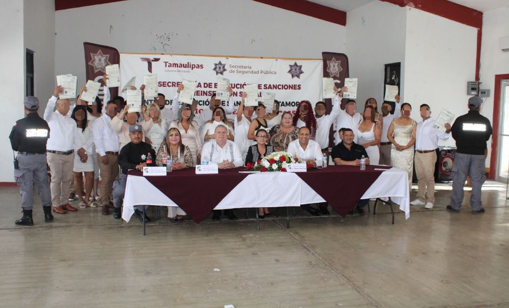 Matamoros, Tamaulipas.- En un ambiente de respeto y compromiso, 15 hombres y tres mujeres que residen en el Centro de Ejecución de Sanciones (CEDES) del municipio de Matamoros formalizaron su unión a través de la Campaña de Matrimonios Colectivos 2025 organizada por el Sistema DIF.