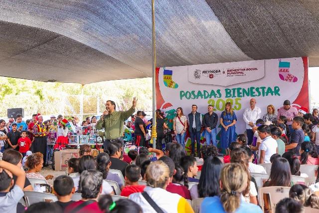 Reynosa, Tam.- El Alcalde Carlos Peña Ortiz encabezó una emotiva Posada Bienestar en el fraccionamiento Terranova, acompañado por la Senadora Maki Esther Ortiz Domínguez donde compartieron alegría, regalos y momentos especiales con las familias de la comunidad.