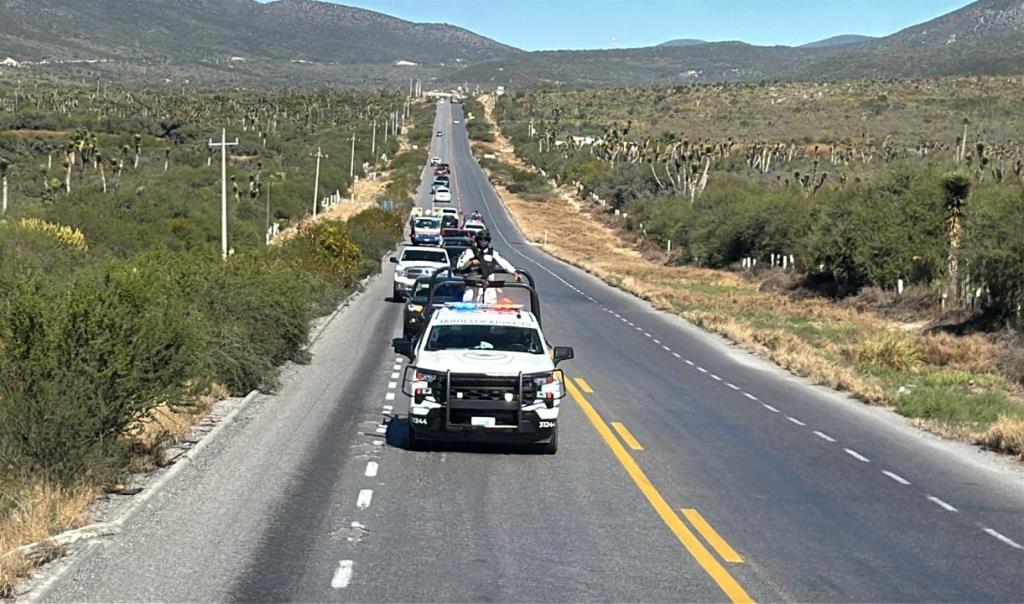 En ese punto, la caravana fue recibida por autoridades de la Fuerza Civil del estado de San Luis Potosí y la Guardia Nacional, quienes continuaron con el acompañamiento en la entidad vecina.