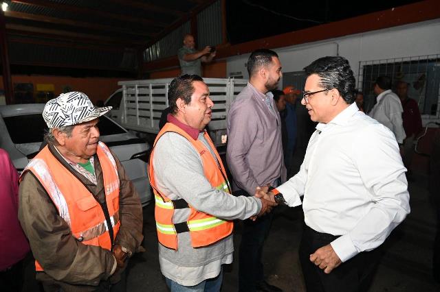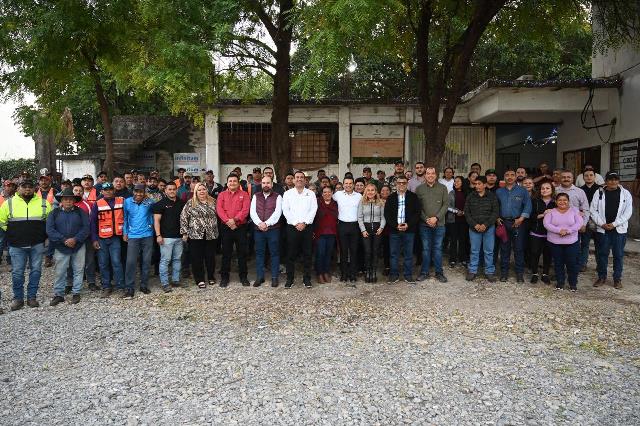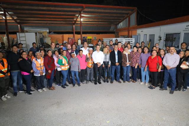 En gira de trabajo conjunta por los campamentos de barrido manual, parques y jardines, Gattás reconoció la importante labor que realiza el personal del área de Servicios Públicos para cuidar y mantener durante todo el año la imagen urbana de la Capital del Estado.