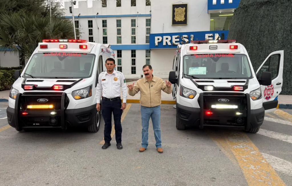 Río Bravo, Tam.- El alcalde Miguel Ángel Almaraz entregó dos ambulancias totalmente nuevas, modelo 2026, que se integrarán al parque vehicular de Protección Civil y Bomberos del municipio de Río Bravo.