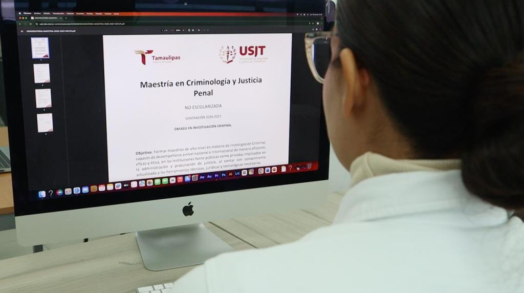 Ciudad Victoria, Tamaulipas.- Como parte de su oferta académica, la Universidad de Seguridad y Justicia de Tamaulipas (USJT) aperturó la inscripción a sus dos maestrías en línea: la primera en Criminología y Justicia Penal; y la segunda en Desarrollo de Políticas Públicas en Materia de Seguridad.