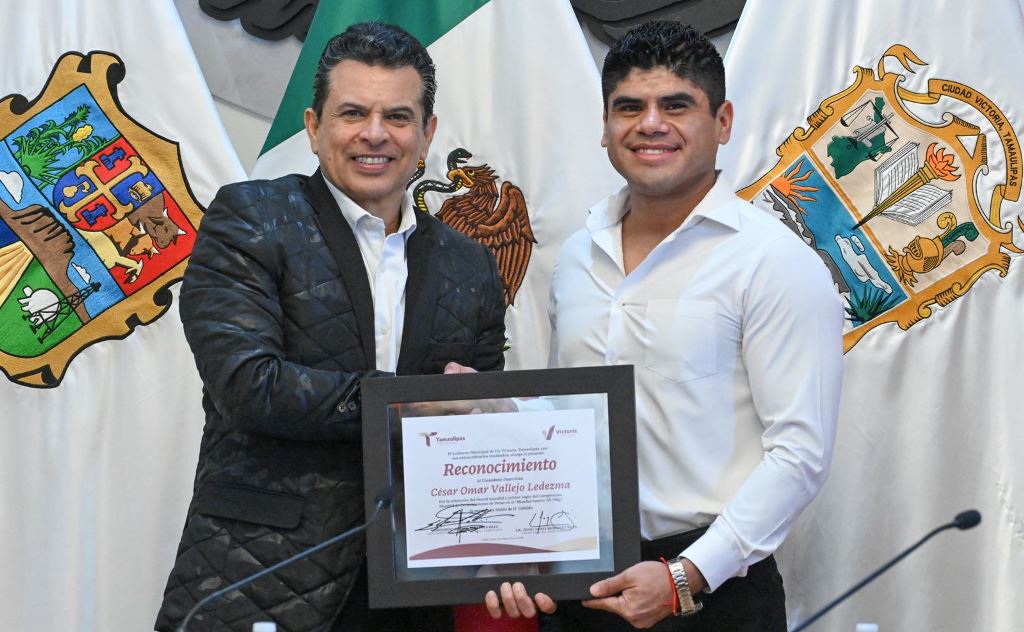 Cd. Victoria, Tam.- Por posicionar a Victoria y Tamaulipas en el escenario internacional del deporte, el Cabildo de Victoria entregó reconocimiento a César Omar Vallejo Ledezma, por obtener el record en el Mundial de Levantamiento de Pesas Masters 35-79 kg.